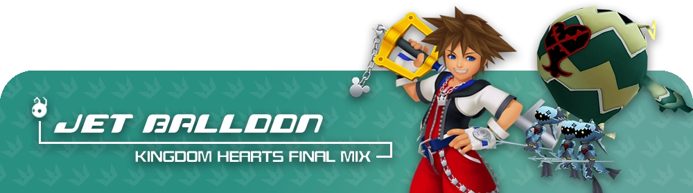 The Jet Balloon is very fast! It will fly around the area at high speeds and release its Missile Divers to strike you. If Sora is struck by a Missle Diver, he will drop a lot of his Munny; be sure to have Treasure Magnet equipped so you can pick it up again.