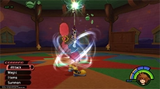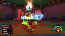 Throughout Sora's journey, you will learn various magic spells through storyline events and side-quests. There are three levels for each spell that can be acquired. You can use magic spells to gain an advantage during battle or to interact with the environment in certain situations.