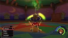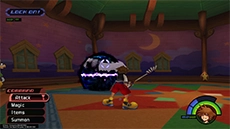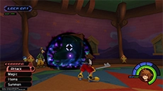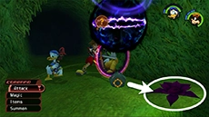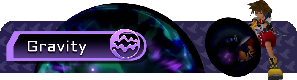 The Gravity spell allows Sora or Donald to produce a gravity field that removes a percentage of HP from enemies caught in the field; it's most effective against enemies with large amounts of HP (Large Body, Fat Bandit, Battleship, Defender, etc). When the spell is upgraded, the gravity field becomes larger, and more HP is sapped from enemies. This spell can also be used to lower certain platforms.