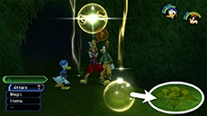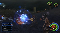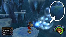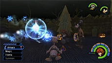 The Blizzard spell allows Sora or Donald to send a burst of ice in the direction they are facing; it covers a wider area, so it's effective against several enemies grouped together. When upgraded, the spell increases in size, range, and damage. You can also use this spell to put out most fires you encounter, and you can use it to freeze the bubbles in Hollow Bastion.