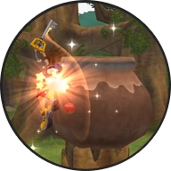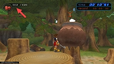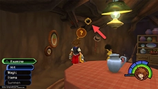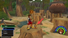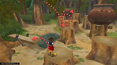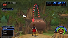 Lock on to the nuts that Tigger throws and strike them back at the pot to increase your score. Your score will multiply with the more nuts you hit in a row, and it multiplies further if you strike a nut as soon as it's reachable. Jump before swinging to increase your score. If you fall off the stump, the mini-game will end; speak to Roo to try again. ![]() ![]() ![]() REWARD: Mythril |