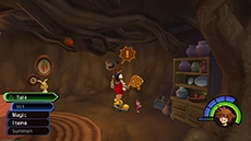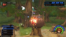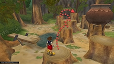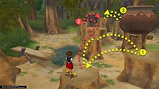 Owl will give you a tutorial on how to help Pooh retrieve hunny from the Hunny Tree, but he won't mention this crucial tip: each time you strike the bees, Sora will automatically jump back to the nearest branch. There is typically no need to move the left analog stick after swatting the bees. When Pooh is still climbing higher, stay one branch below where Pooh is located; this position allows you to have a broader range to swat the bees from. If you happen to fall and need to reach Pooh quickly, use the Rush command. ![]() ![]() ![]() REWARD: Naturespark |