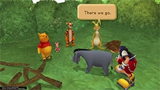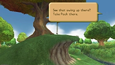After the rescue, it's discovered that Eeyore has lost his tail. Lock-on to Pooh and let him follow you up the hill to the swing (he may stop for Hunny if he gets near a pot; just lock on to him again when he's finished).
