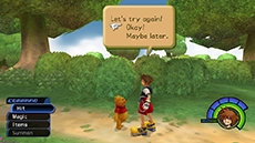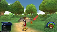Once you've brought Pooh near the swing, Owl will provide a tutorial on how to push Pooh on the swing. If you press ![]() ![]() ![]() REWARD: Sora learns the magic spell Stop (Stopra) |