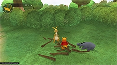Travel around behind the house to find Pooh and Piglet; someone from within the house keeps saying "Nobody's" home. Return to the front of the house and enter through the front door to find