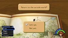 Examine the house with a garden on the left page. Cross the small bridge and pull up all of the pumpkins and cabbages in the surrounding patches for a chance to obtain restorative items.