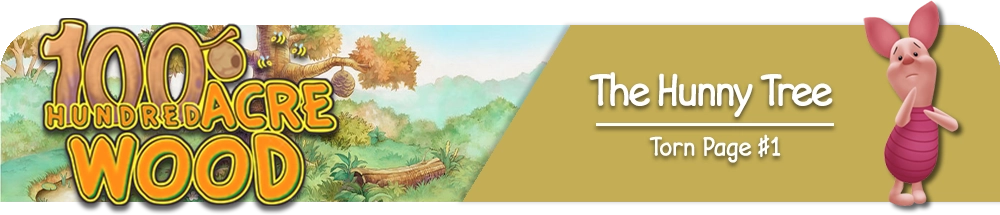 When you enter the Hundred Acre Wood, examine the tall Hunny Tree in the upper-left corner of the right page to find
