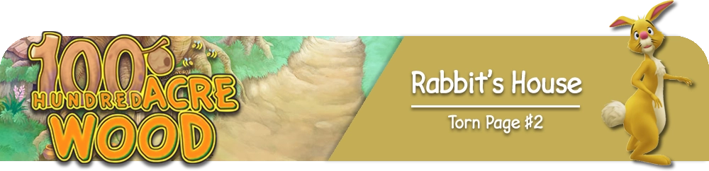 After protecting Rabbit's garden, enter Rabbit's house and examine Pooh. Sora knocks Pooh out of the hole and into a Hunny pot. The Torn Page turns into a Mythril Shard.