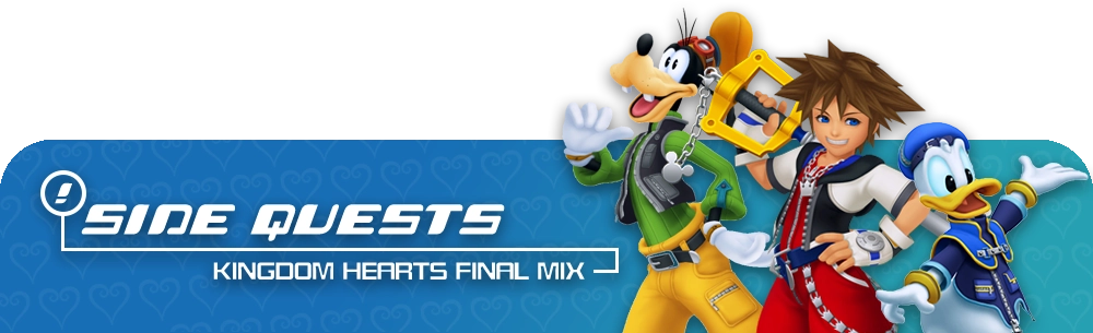 Kingdom Hearts Final Mix is packed with side quests and mini-games in many worlds. Completing these side quests may grant the party rare items, magic spells, and more. Use the links below to reach our guides for each side quest!
