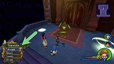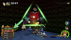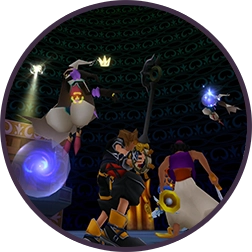 After the opening cutscene, Sora & company are forced into a fight with Heartless. Use Reflect magic to quickly send back incoming attacks. This is also a good opportunity to gain experience for Wisdom Form by quickly defeating Heartless with magic. The fight will end after 60 seconds or when Sora’s HP falls to critical levels.