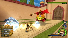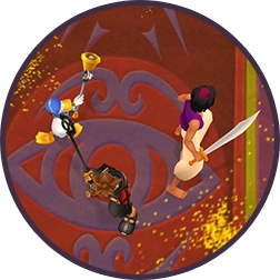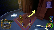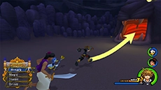 Aladdin has the Jackpot ability pre-equipped; this increases the amount of prize orbs (HP, MP, Drive Orbs) that drop when defeating enemies. Pair this with your newly-acquired Follow The Wind keychain's Draw ability to pick up all these extra orbs with ease!
