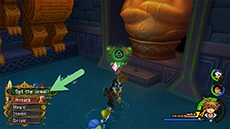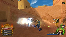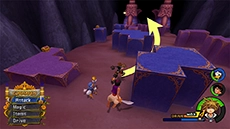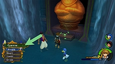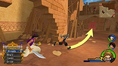 After retreating into the nearby shop, Sora acquires the Agrabah Map. While in the Peddler’s Shop, visit Mojito’s Moogle Shop to check out newly available accessories for purchase. When you’re ready to proceed, exit the Peddler’s Shop and travel northwest and through the northernmost passage to reach the Palace.