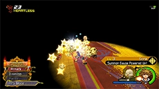 INFORMATION: Defeat all of the enemies! Your goal is to defeat all Heartless on each of the five platforms before the 2-minute timer runs out. Here are a few tips: