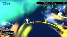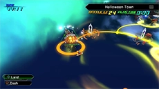After defeating the Volcanic Lord and Blizzard Lord, Sora will open a new pathway with the Keyblade and receive the Lamp Charm, allowing you to summon Genie in combat. After the cutscene, you'll be taken to the world map. Before landing in a world, take note of its BATTLE LV in the top-right corner of the world menu. It's recommended to visit worlds in ascending order of battle level. Clearing the Broken Highway gummi route will allow you to Land in Halloween Town.