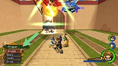 When Volcanic Lord is attacking up close, Blizzard Lord will periodically freeze your party members in place with ice. You can thaw them out with a cast of Fire magic. And when Volcanic Lord is on backup duty, it will set your party members ablaze; these flames can be put out with Blizzard magic. Whenever your party members are frozen or on fire like this, they cannot attack or use magic, and Sora can’t use Forms or Limits, so it’s important to use magic to free them whenever you can.