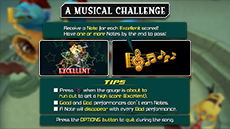 INFORMATION: Receive a Note for each Excellent scored! Your objective is to clear the musical challenge with at least one musical note on the barline in the corner of the screen.