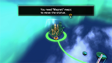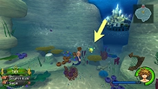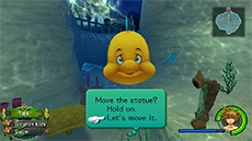 After you acquire Magnet magic, approach Flounder near the entrance to Triton's Palace and Talk to him. When you are ready to move the statue, select "Let's move it." to participate in the next musical challenge.