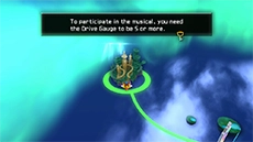 After clearing the musical challenge, several cutscenes will play and you'll be sent to the world map. You must return with a Drive Gauge of 5 or more in order to continue the story in Atlantica. Clearing the Sunlight Storm gummi route will allow you to Land in Pride Lands.
