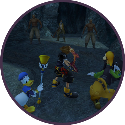 After the cutscene, strike the pirates with the Keyblade a few times (or let your HP fall to critical levels) to continue. After another cutscene, you can strike the pirates with your Keyblade and deal damage effectively.
