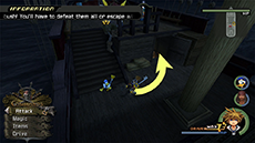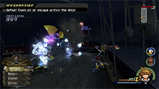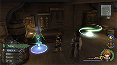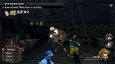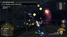 Before the Interceptor can reach its destination, it will be boarded by undead pirates and Heartless; attack the pirates with magic to cut down their HP quickly and use air combos on the flying Heartless to stagger them. You can also retreat into the Ship’s Hold to avoid the enemies, then exit the hold to continue (you must talk to Jack and select your destination again).