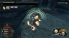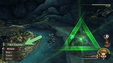 One more attack is added to Barbossa’s repertoire when 20% of his second HP bar remains. In this phase, he will strike with a nine-hit counterattack whenever he recovers from being staggered. If one of his hits makes contact with you, the only way to escape the remaining strikes is to use the Land reaction command. There are actually two opportunities to use this command; the first opportunity is during a short pause after his first three sword strikes, and the second opportunity is right after the next four quick jabs. After using Land, wait until Barbossa raises his pistol to use the Reverse Blade command; this will stagger him and give you an opportunity to follow up with a combo or magic.