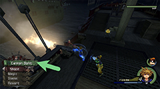 - The Black Pearl will periodically fire cannonballs at Sora & co. - there will be a wide blue circular reticle on the deck of the ship where the cannonfire will hit; try to steer clear of this area. You can approach the cannons on the edge of the deck and use the Cannon Bomb reaction command to send cannonfire at the Black Pearl - this will prevent it from firing its own cannons for 20 seconds.
