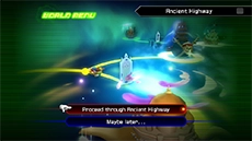 After defeating Barbossa, Sora will open a new pathway with the Keyblade and receive the Follow the Wind keychain. After the cutscene, you'll be taken to the world map. Before landing in a world, take note of its BATTLE LV in the top-right corner of the world menu. It's recommended to visit worlds in ascending order of battle level. Clearing the Ancient Highway gummi route will allow you to Land in Agrabah.